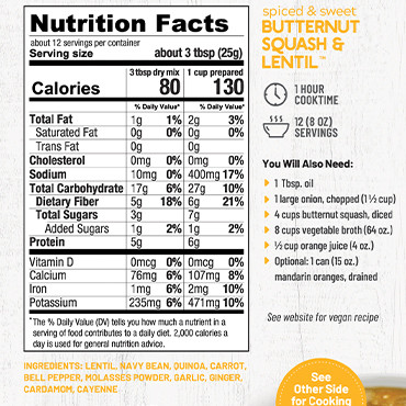 Spiced & Sweet Butternut Squash & Lentil Soup is the perfect Fall meal. Adding butternut squash and orange juice to our balanced spices complete this delicious golden soup designed for vegetarian tastes.