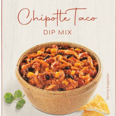 Southwestern spices, freeze dried black beans, corn and peppers combine with chicken for a cheesy, meaty dip to serve warm with tortilla chips. Kick off football season or any sports spectating party with this taco dip mix recipe!