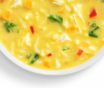 Named after the traditional Thai ‘wai’ greeting, this luscious yellow curry-style soup emanates authentic Thai flavor. The curry spices and velvety coconut texture marry perfectly, and we added just a tiny kick of sweet-heat to make it, well, just right.