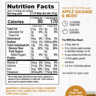 A mixture of colorful beans seasoned with a hint of curry makes this heartwarming meal. Add gourmet chicken sausage and a diced apple.