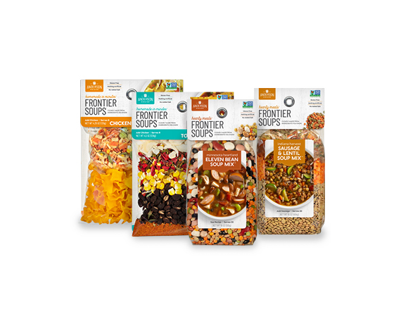 Since 1983, Frontier Soups has sold the finest all natural, dried soup mixes to specialty food, gift, and finer grocery retailers nationwide. Our product lines include our Homemade in Minutes® and Hearty Meals™ soup mixes, gourmet Party Starter™ dip mixes, cornbread mixes and more, all created to give consumers ‘shortcuts to homemade’. All of our products are made with real ingredients.